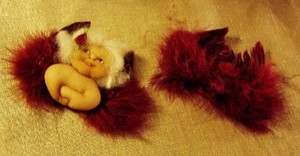 Flotte englevinger i fjer. B.11 cm. H. 9 cm.